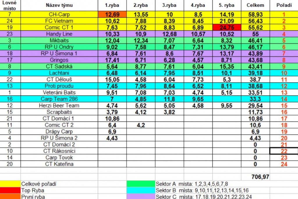 V neděli skončil Carpmaraton Kateřina, počasí ne vždy přálo, ale nádrž vydala mnoho krásných ryb. Největší ryba závodu vážila téměř 25 kg, z celkem 24 týmů byla většina úspěšná a rybu ulovila.