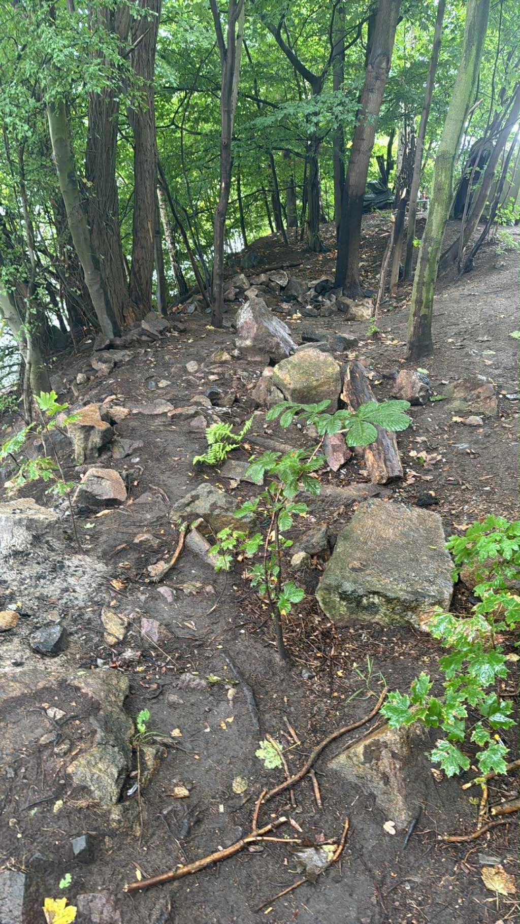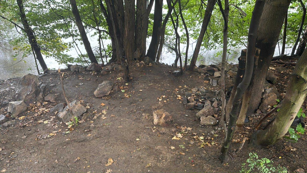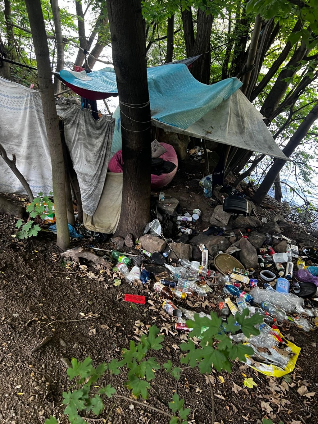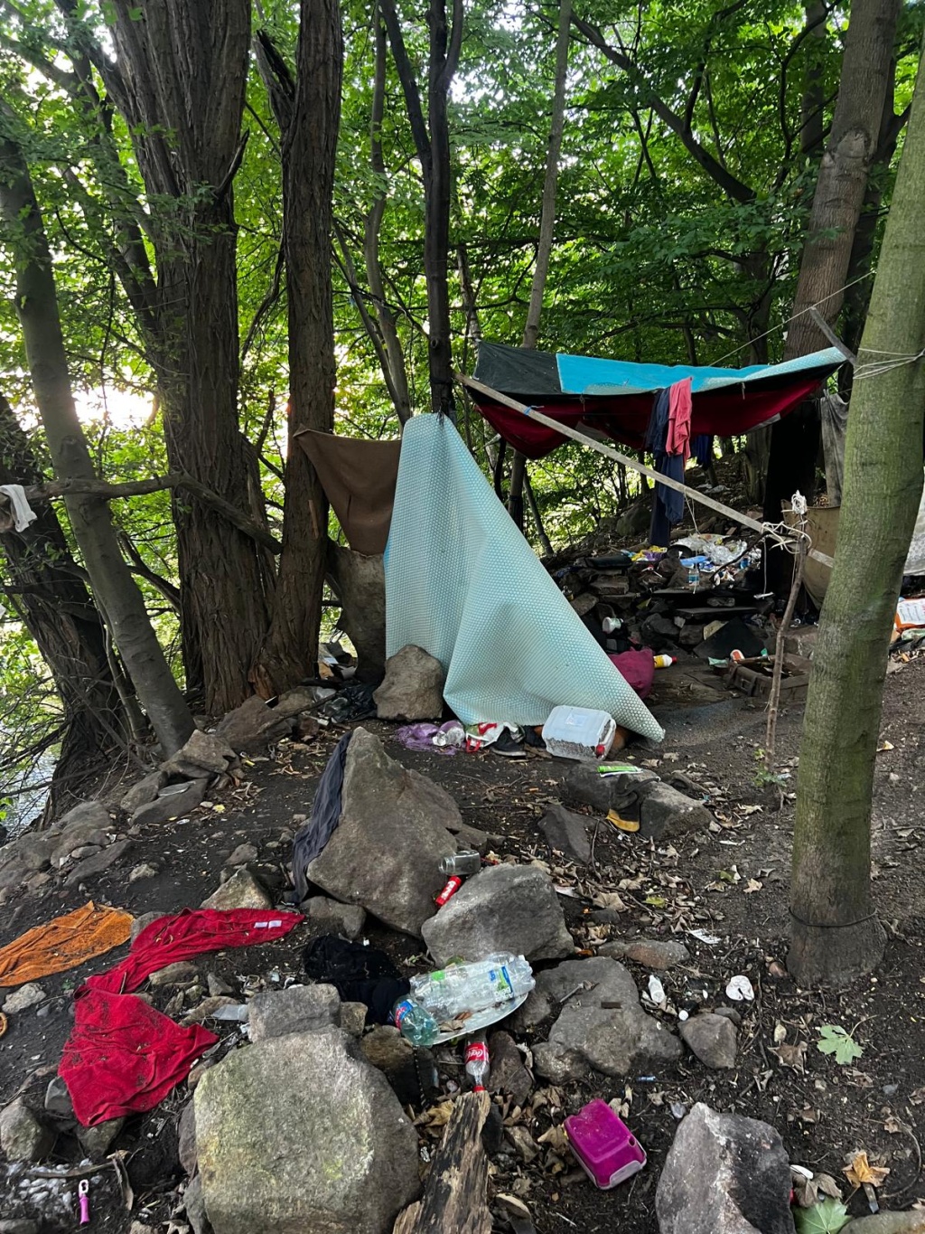 Nejednalo se ani tak o nouzové bydliště osoby bez domova, jako spíš doslova černou skládku, kterou již v minulosti likvidovali pracovníci Povodí Labe, s. p., ve spolupráci s policií, (odpadky létaly ze strany tohoto bezdomovce dle svědectví rybářů i přímo do řeky). Tentokrát se zdá, že se nezvaný návštěvník již znovu nevrátí a nebude škodit. A místo nyní až na opálené stromy výrazně prokouklo.