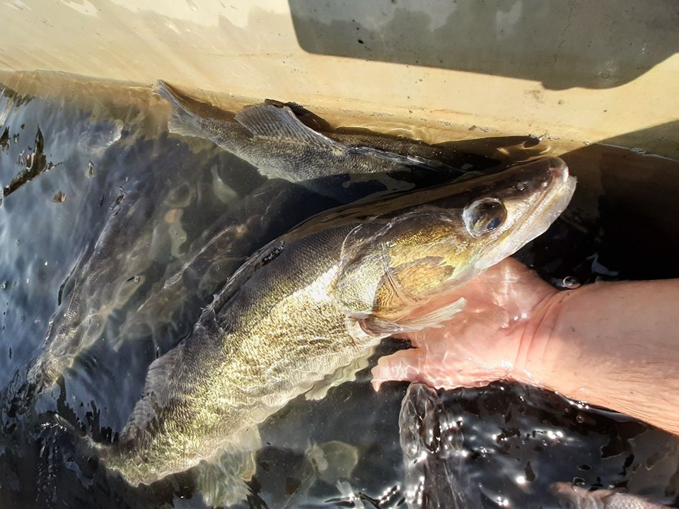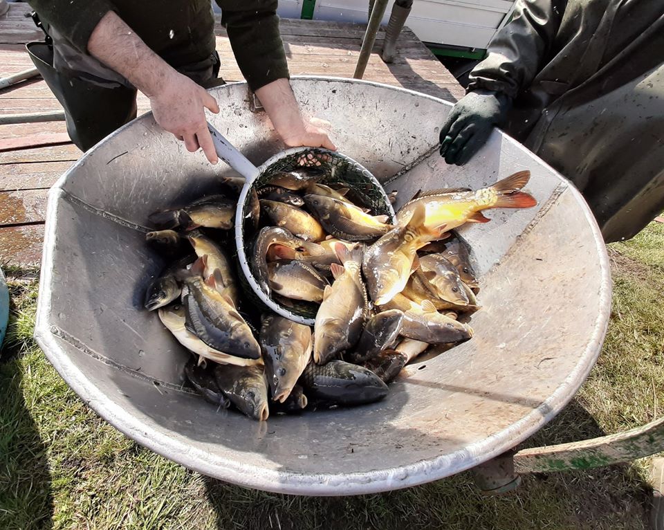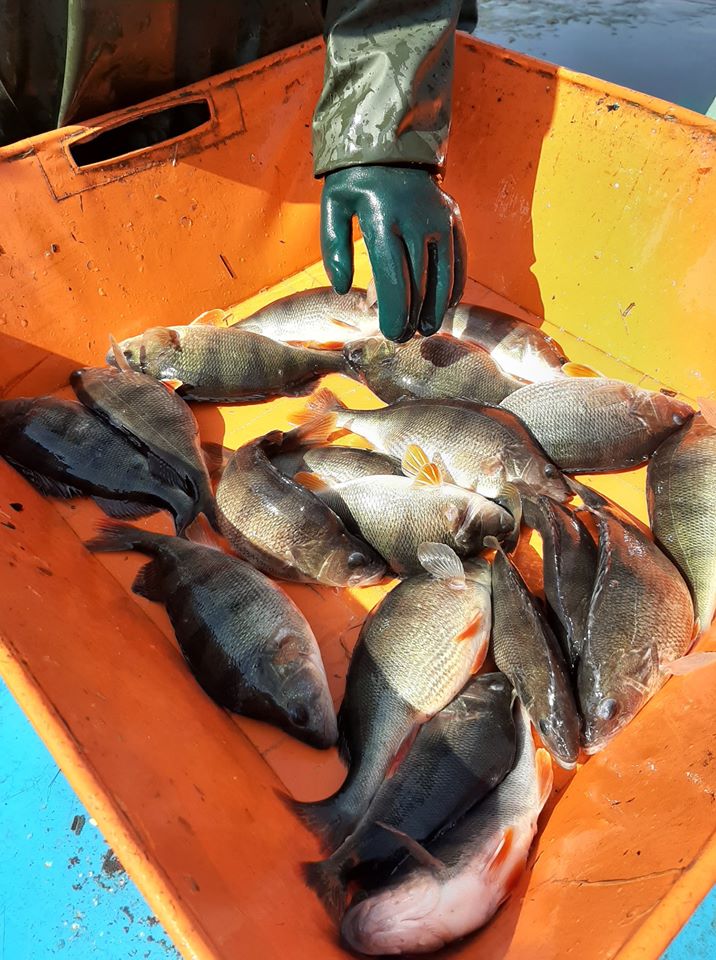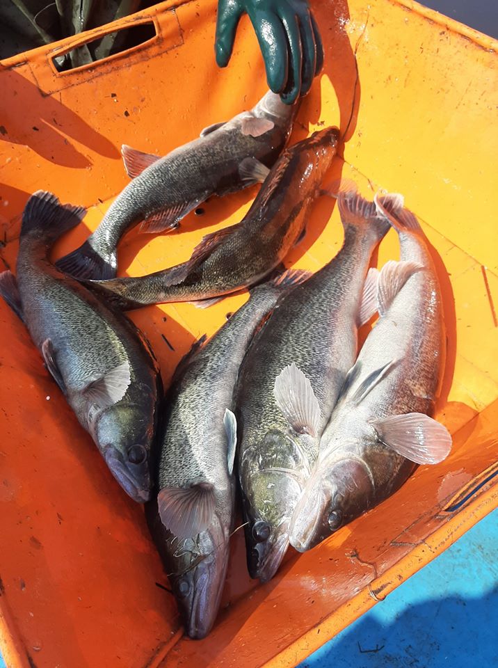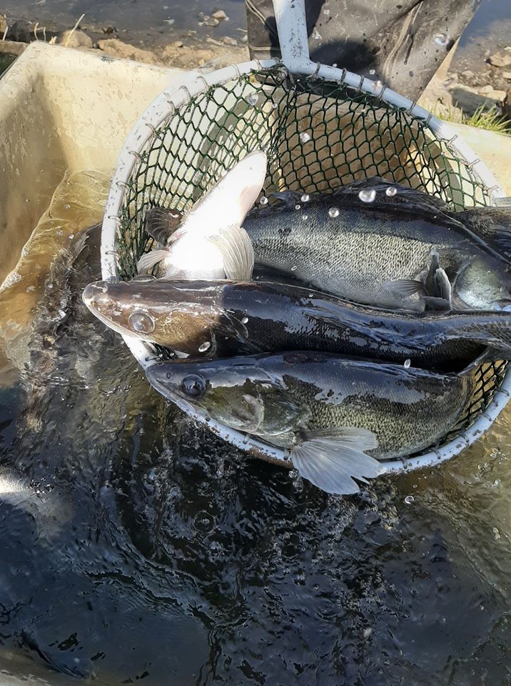 Sobotní výlov na rybochovném zařízení Severočeského územního svazu v Chabařovicích splnil veškerá očekávání! Krom do revírů distribuovaného 100 kg candáta o průměrné váze 1,3 kg/ks, byly desítky kg candáta určeny k další produkci ÚS. K chovu v MO distribuováno také 50 kg krásných okounů (0,25-0,5 kg/ks), k další produkci MO a ÚS určen také veškerý kapr a amur.