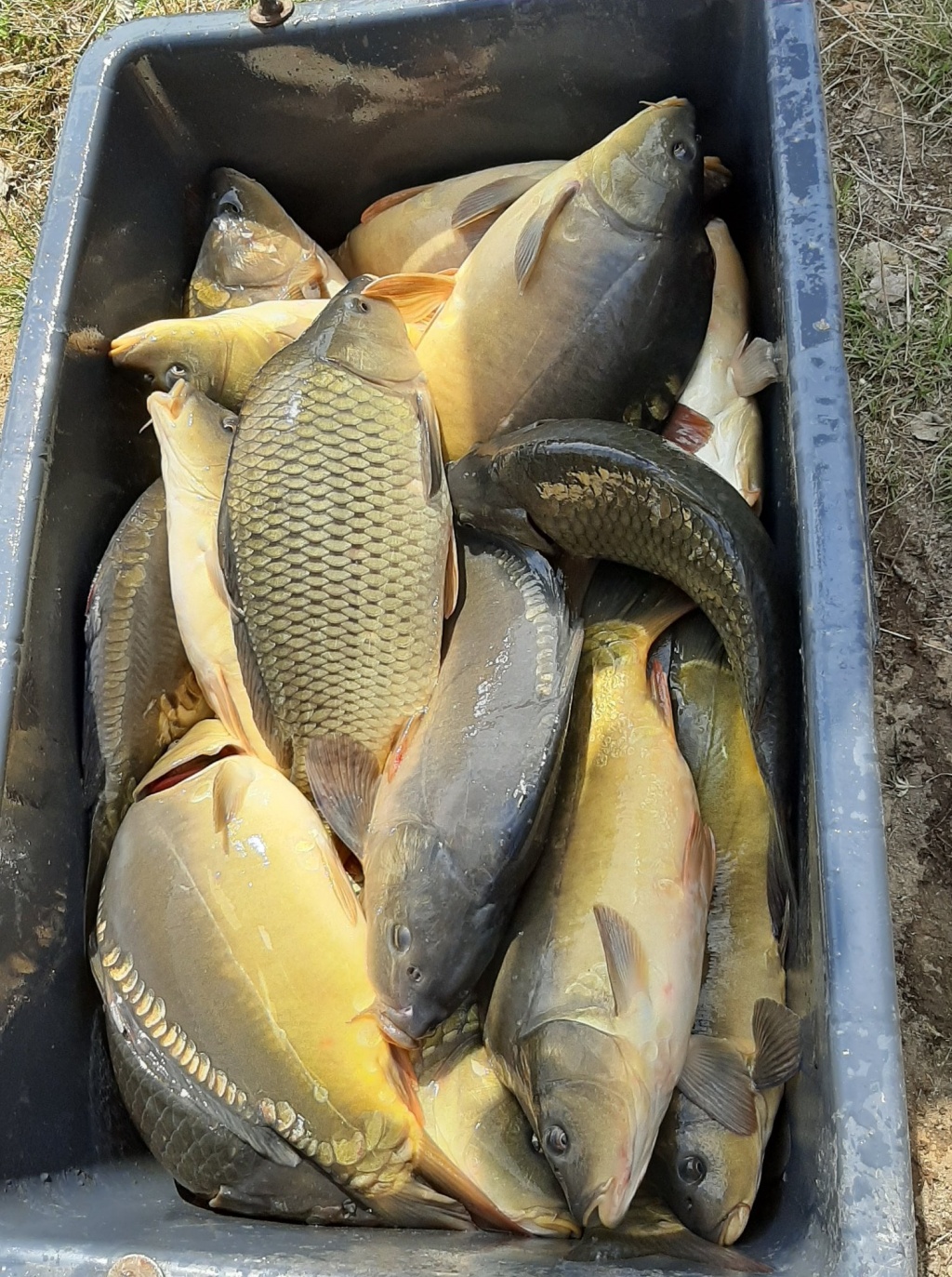 - Nádrž č. 10 vydala rekordních 3760 kg kapra (1,25 kg/ks) a 550 kg amura (1,6 kg/ks). Ryby distribuovány do revírů.