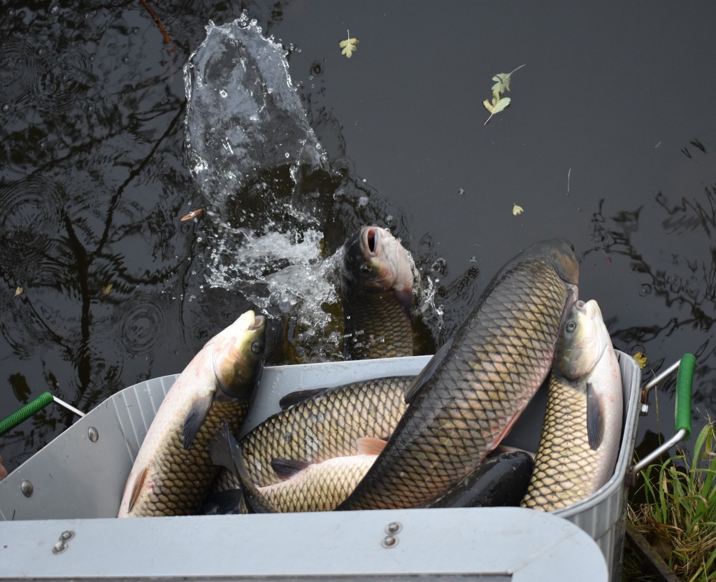 Bylo distribuováno dalších 1220 kg amura o průměrné váze 2,6 kg/ks.