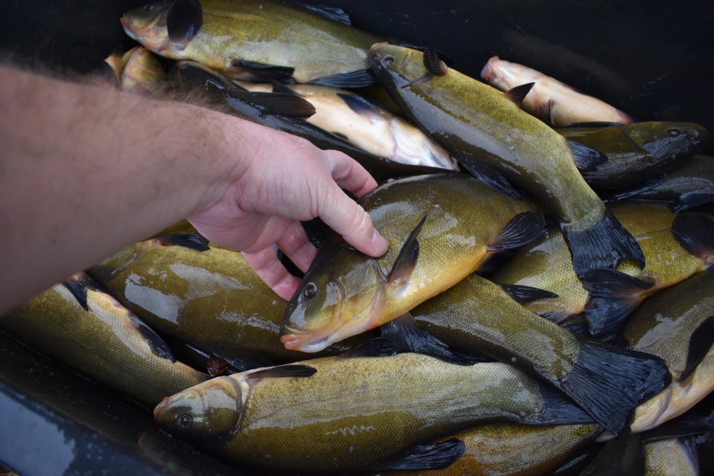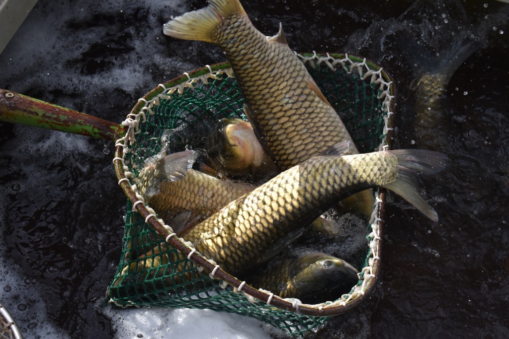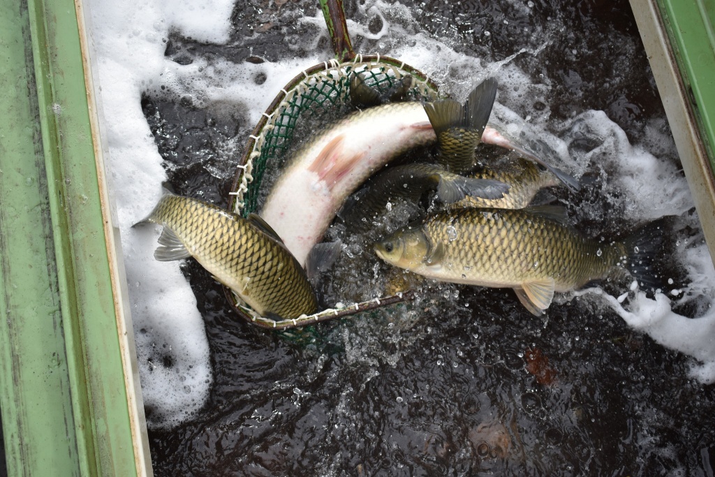 Bylo distribuováno 170 kg štiky o průměrné váze 1 kg/ks, 270 kg lína o průměrné váze 0,35 kg/ks, 950 kg amura o průměrné váze 1,8 kg/ks a 10000 kg kapra o průměrné váze 1,3 kg/ks. Na našem rybochovném zařízení v Chabařovicích byly zároveň dnes sloveny dvě menší nádrže, info budeme prezentovat.