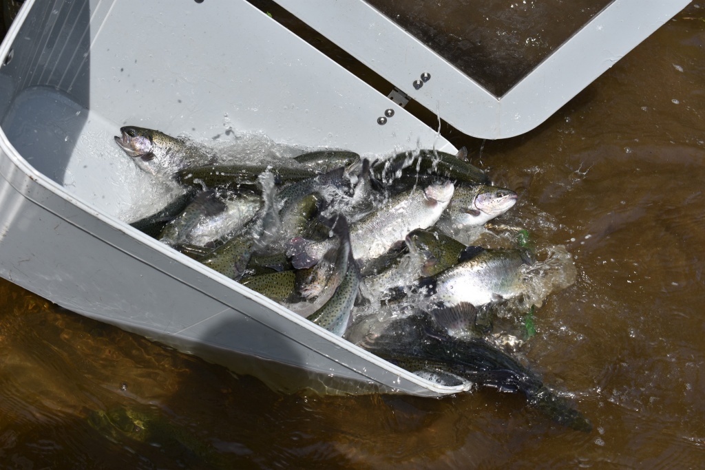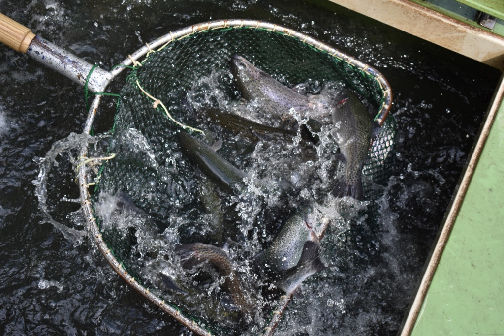 Do revírů bylo v minulém týdnu distribuováno 1500 kg pstruha (Pd) o průměrné váze cca 0,4 kg/ks.