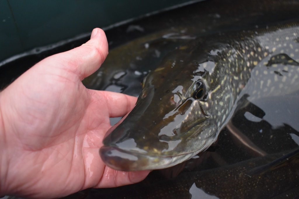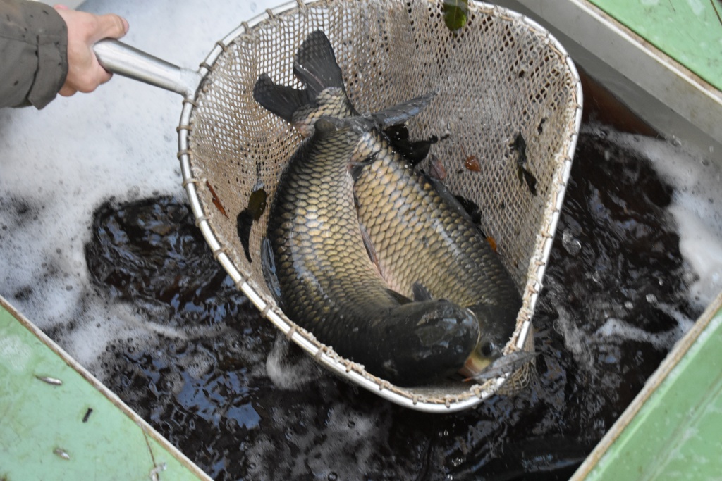 Včera bylo distribuováno 200 kg candáta o průměrné váze 0,8 kg/ks, 200 kg štiky o průměrné váze 1,5 kg/ks a 800 kg amura o průměrné váze 2,9 kg/ks.