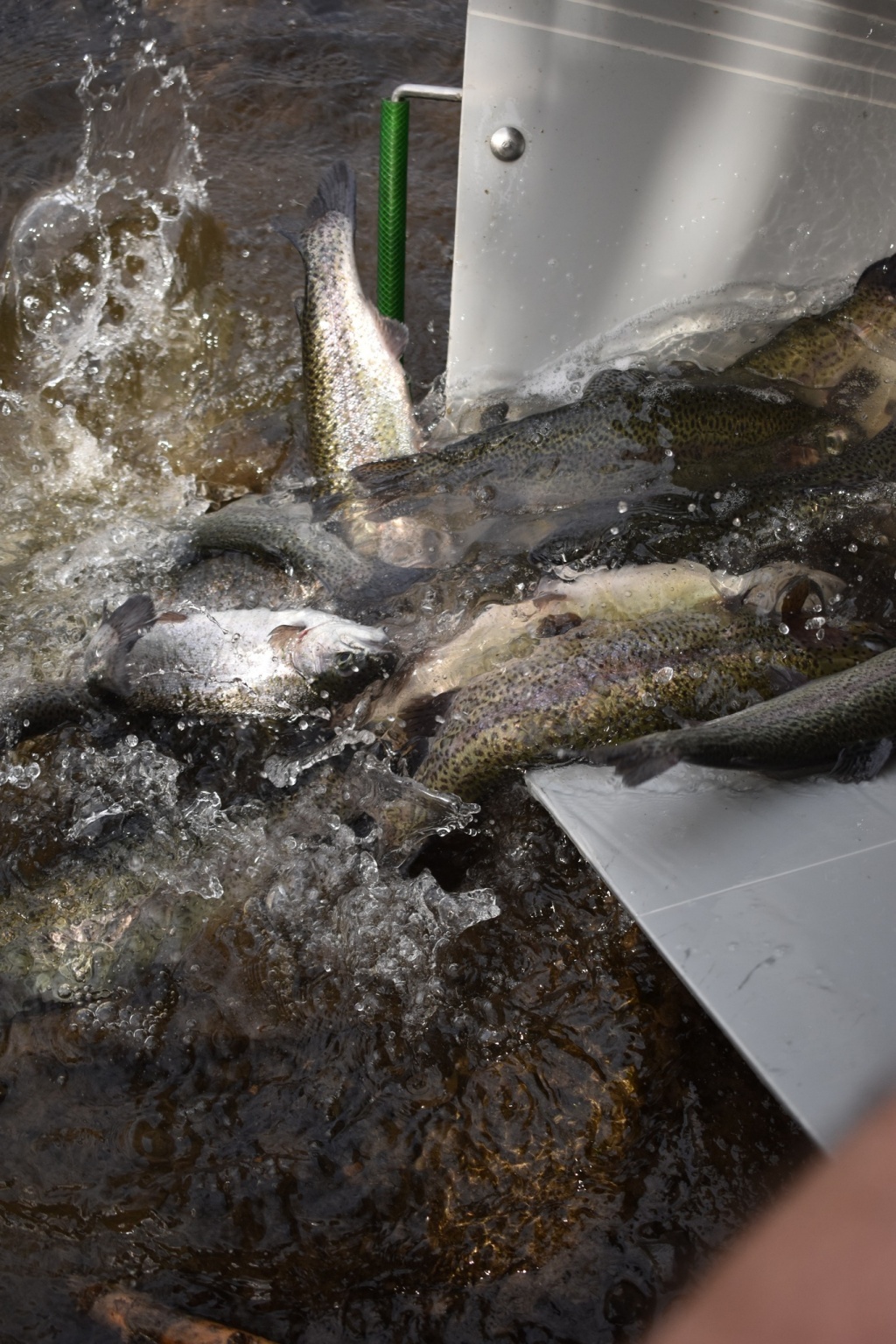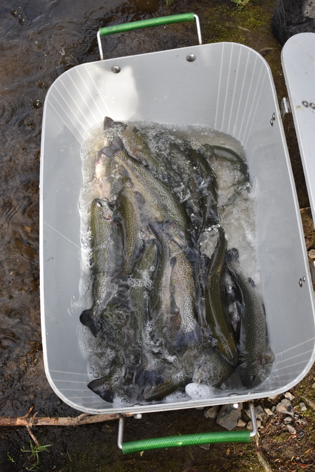 V rámci průběžných distribucí bylo do vybraných P revírů Severočeského územního svazu v pátek distribuováno dalších 750 kg pstruha (Pd). Po celou P sezónu budou další a další ryby následovat.