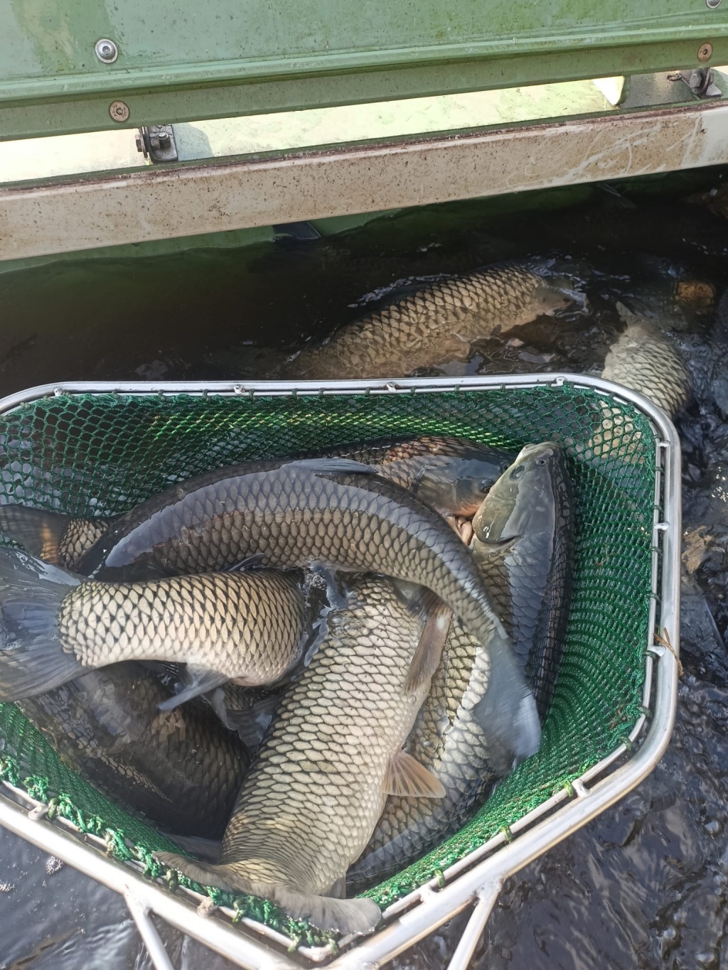 Dnes bylo distribuováno 1350 kg štiky, z toho 1000 kg o váze 0,75 kg/ks a 350 kg o průměrné váze 2 kg/ks. Stejně tak revíry Severočeského územního svazu obohatilo 2470 kg amura o průměrné váze 2 kg/ks.