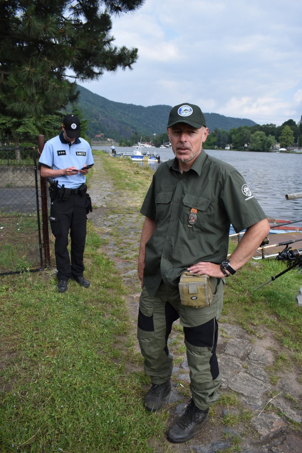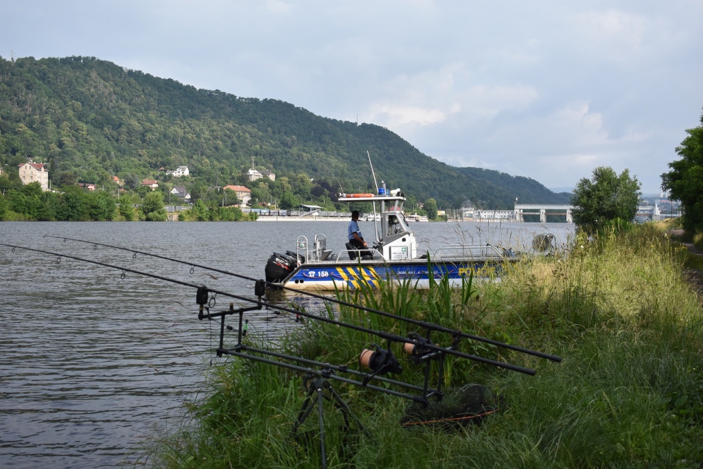 Kontroly členů rybářské stráže na řadě míst probíhají i ve spolupráci s hlídkami Policie ČR a městské policie. Nejinak je tomu na Labi, kde probíhají pravidelné kontroly také ve spolupráci s poříčním oddělením Policie ČR Brná. Včera takto kontrolovány desítky rybářů, drobnosti řešeny domluvou, odstraněno několik protiprávně umístěných bójí (např. v plavební dráze).
