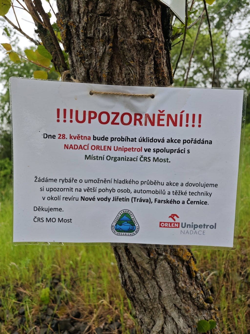 I přes včerejší nepříznivé počasí se kolem nádrží na Mostecku uklízelo. Celkem 45 zaměstnanců společnosti ORLEN Unipetrol (v rámci zaměstnaneckých dnů) a rybářů z MO Most uklízelo kolem nádrží Nové vody Jiřetín, Farského, Černice a Strouha, uklizeno bylo také kolem nádrže "Teplák", která není součástí revíru, ale je v majetku společnosti ORLEN Unipetrol.
