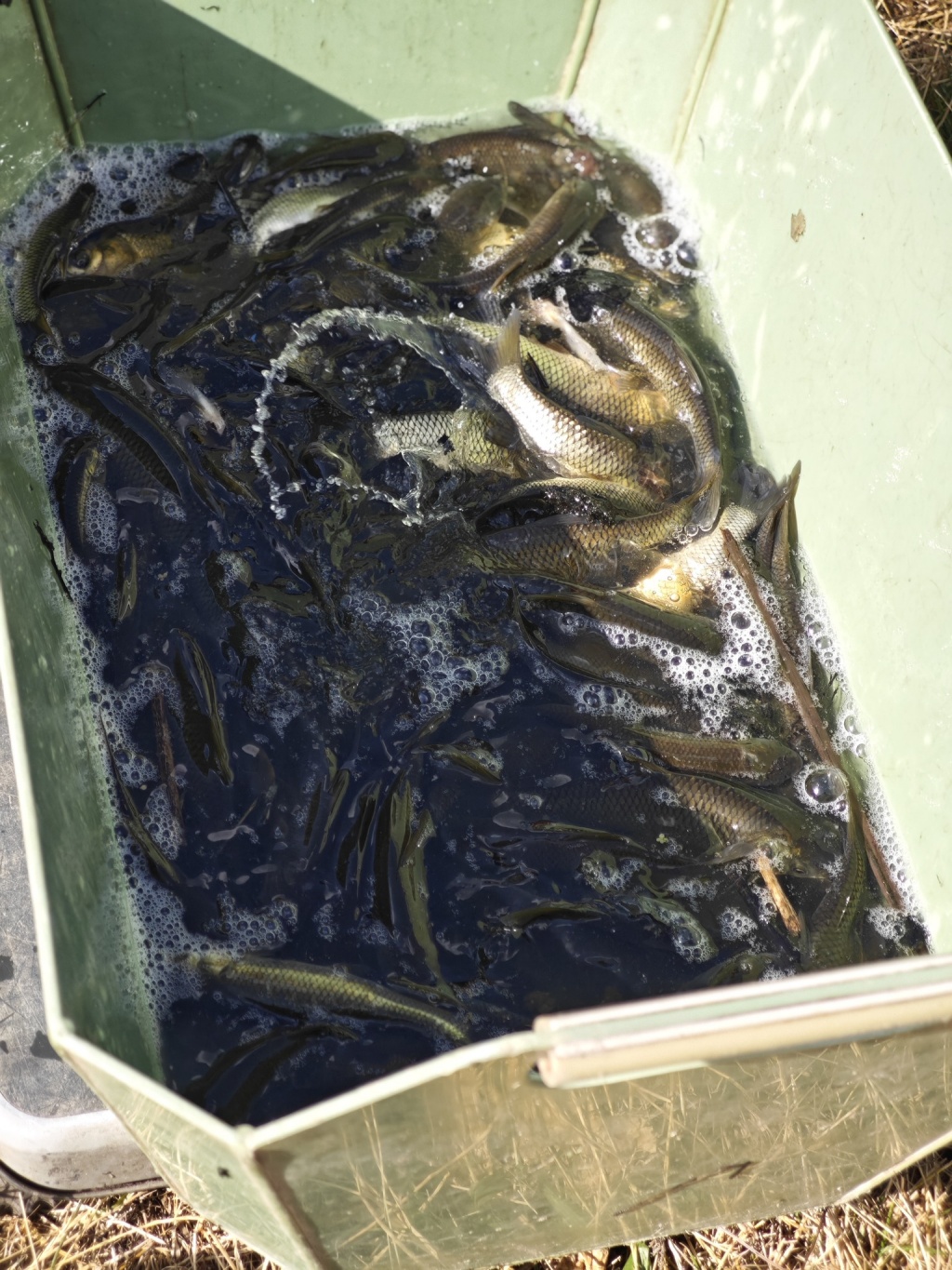 Na rybochovném zařízení Severočeského územního svazu v Chabařovicích jsme slovili sádky, ryby z nich určené k další produkci (chovu) putovaly do chovných rybníků, v budoucnosti jistě potěší nejednoho rybáře.