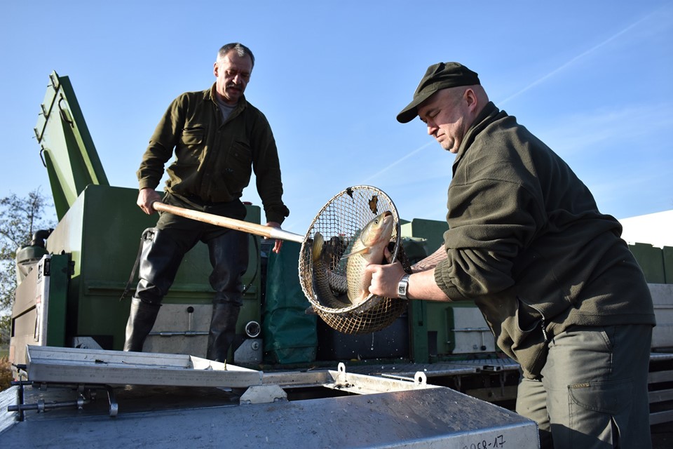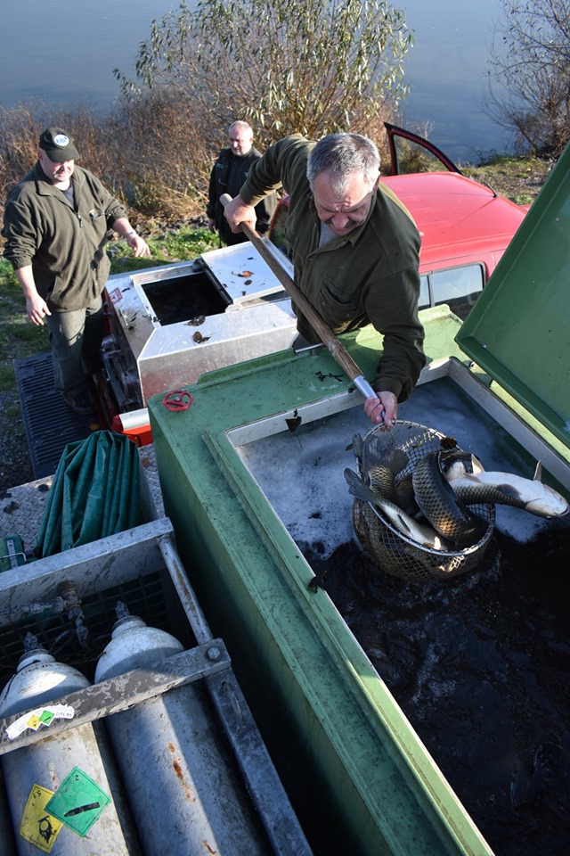 Do revírů od 29.10. do 31.10.2019 distribuováno 6000 kg krásného amura o průměrné váze 2 kg/ks, 150 kg štiky (0,5 kg/ks) a 700 kg kapra (1,35 kg/ks).