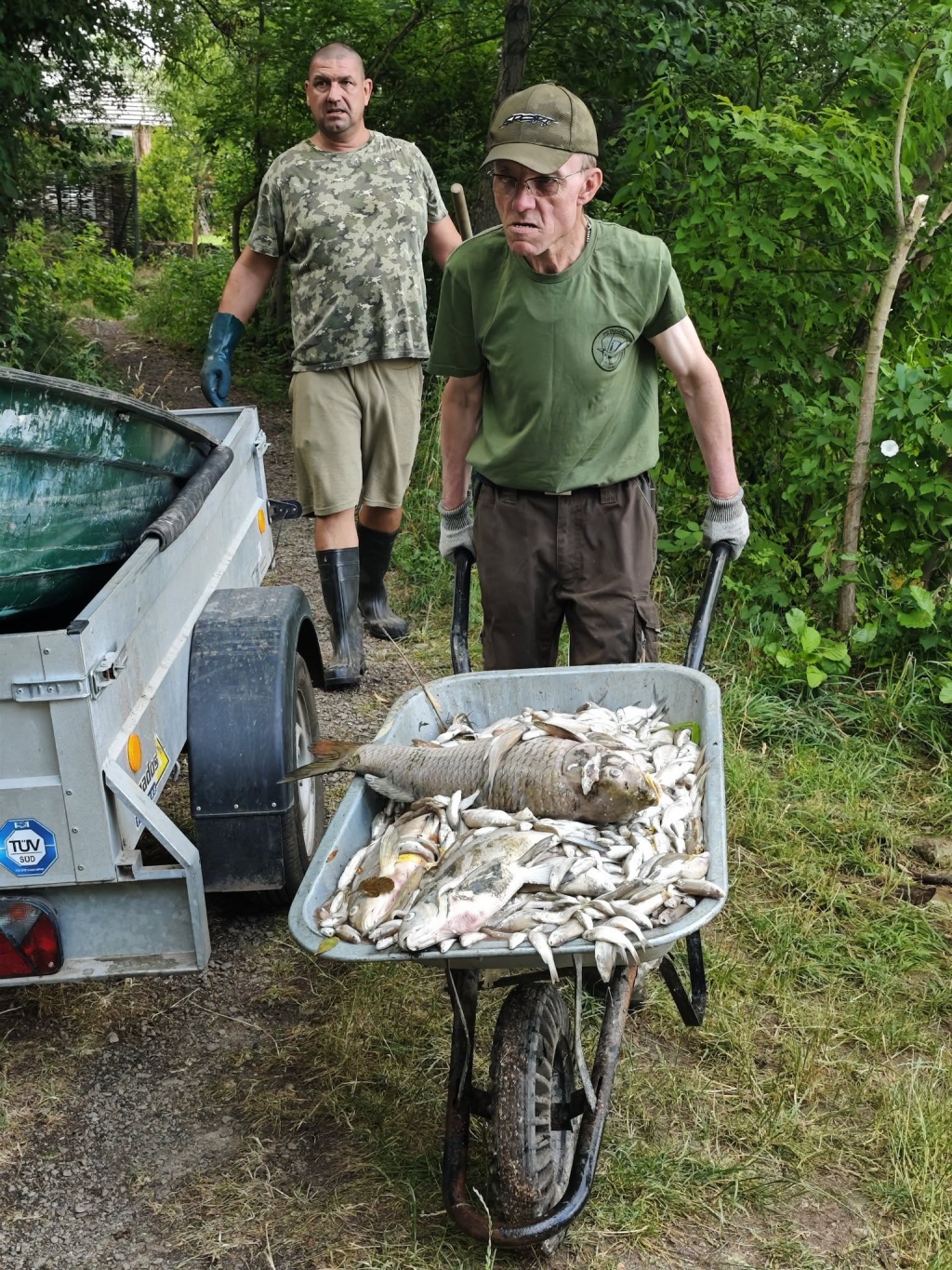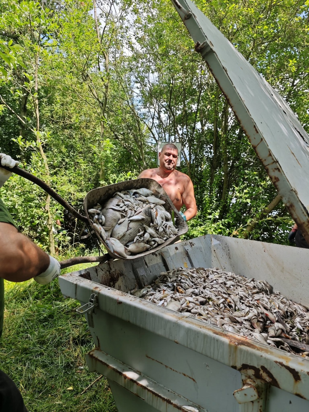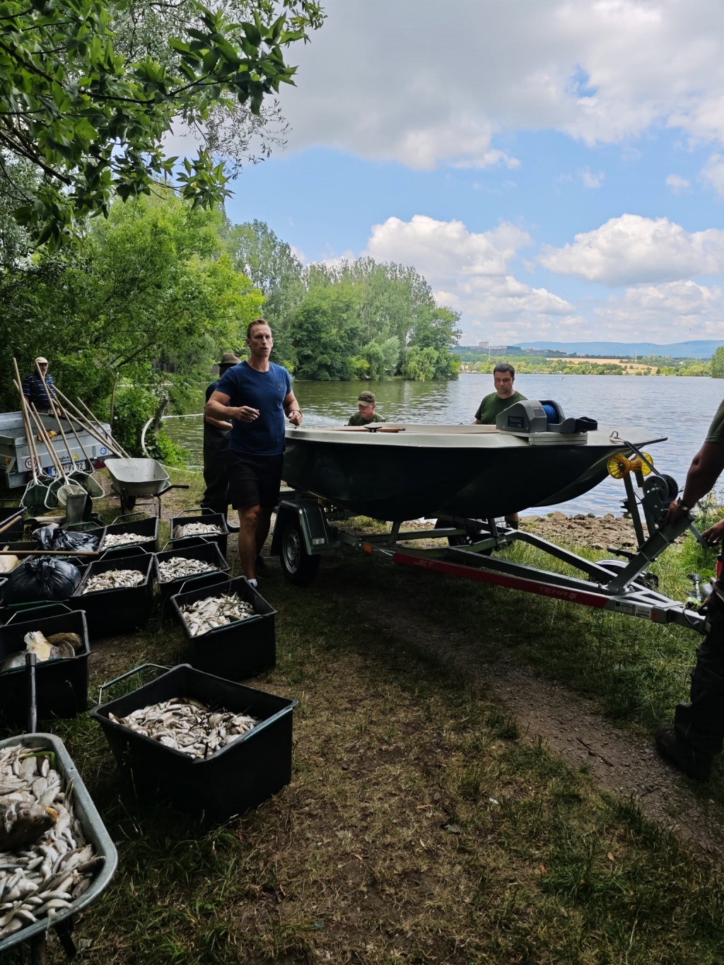 Na úklidových pracích se podílelo kolem 30 dobrovolníků z řad členů MO Teplice, ale i sousedních MO, přidalo se i několik místních a dětí z rybářských kroužků s maminkami. Všem, kteří přiložili ruku k dílu velice děkujeme. Práce to je velice náročná nejen s ohledem na současné tropické teploty, ale samozřejmě i čichové vjemy a smutek nad ztrátou těchto ryb. Odklizení padlých ryb bude probíhat i v dalších dnech.