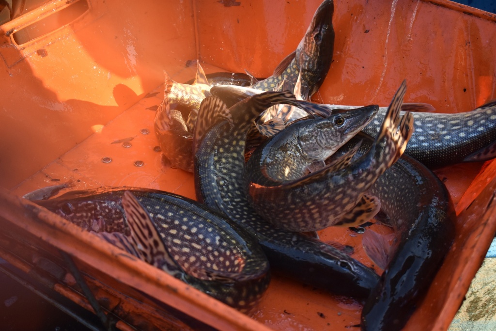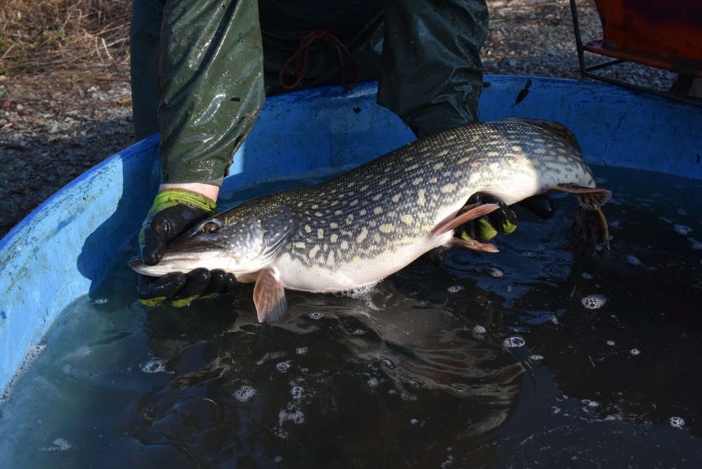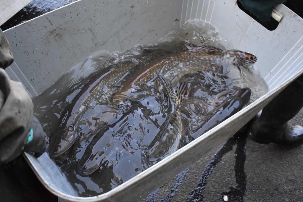Máme za sebou první jarní výlov na našem rybochovném zařízení v Chabařovicích. Nádrž vydala množství krásných štik, které se nám pro výtěr podařilo slovit v tu opravdu správnou chvíli. V nádrži bylo rovněž větší množství bílé ryby, krásní líni, okouni, několik candátů a další druhy ryb. Štiky přímo na výlovu tříděny dle pohlaví, zralosti a vhodnosti k výtěru apod.