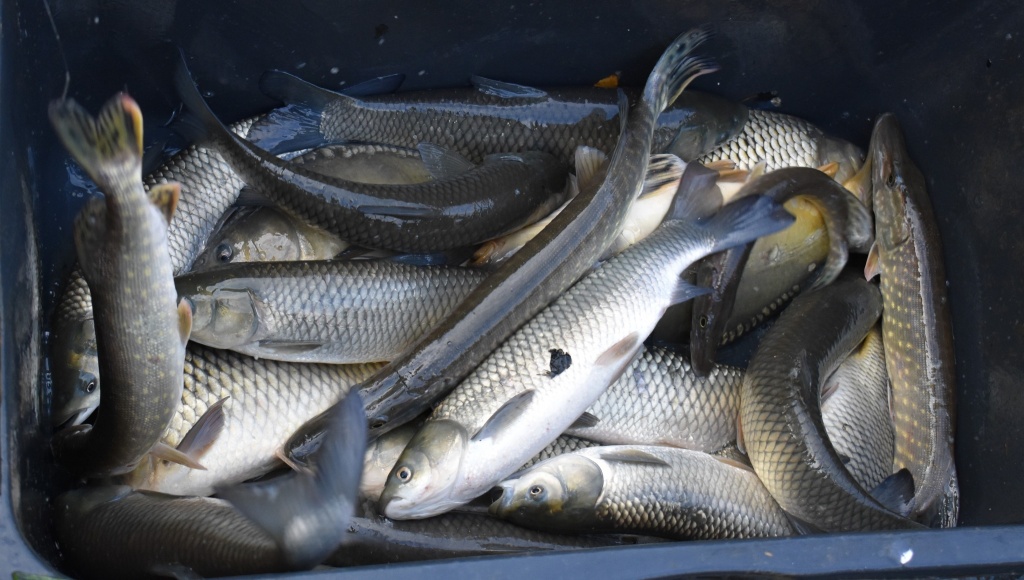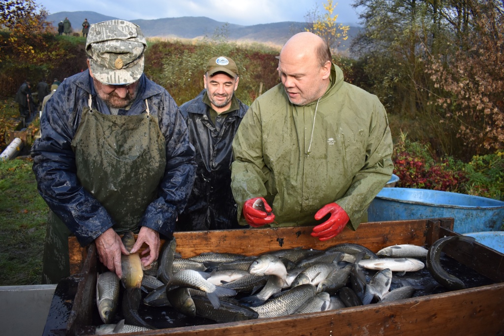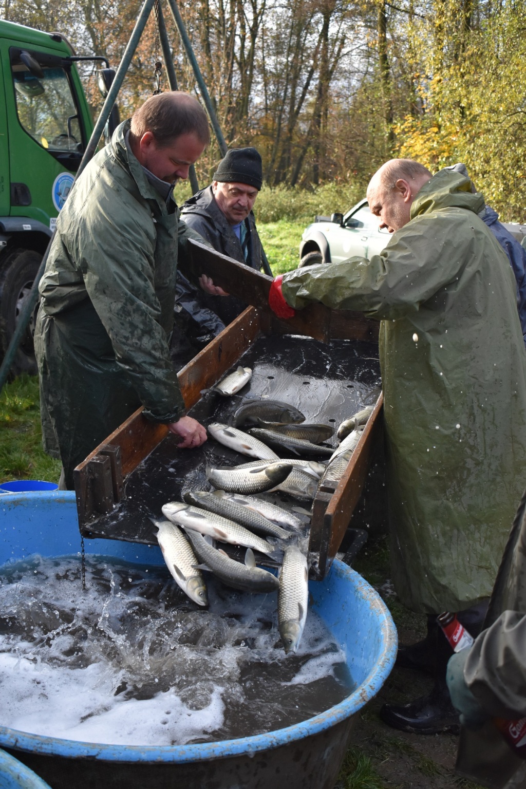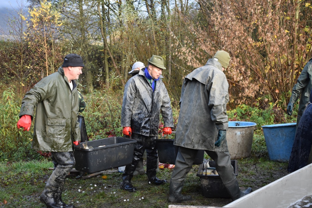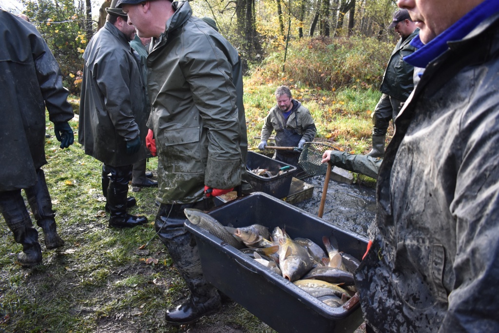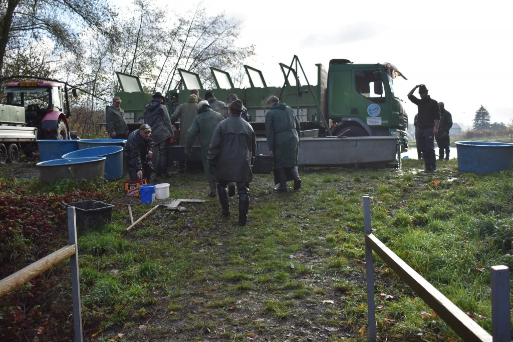 Na našem rybochovném zařízení v Chabařovicích byla včera slovena nádrž Velký Luční. Do revírů z výlovu putovalo 3000 kg kapra, jiné ryby určeny k dalšímu chovu, ať již štiky k jarnímu výtěru, nebo množství amura, který poputuje do revírů v příštím roce. Během týdne plánujeme další distribuce do revírů (dravé ryby, bílá ryba, amuři, kapři).
