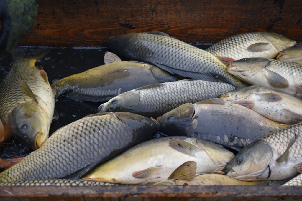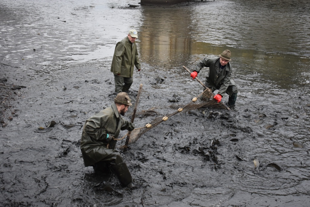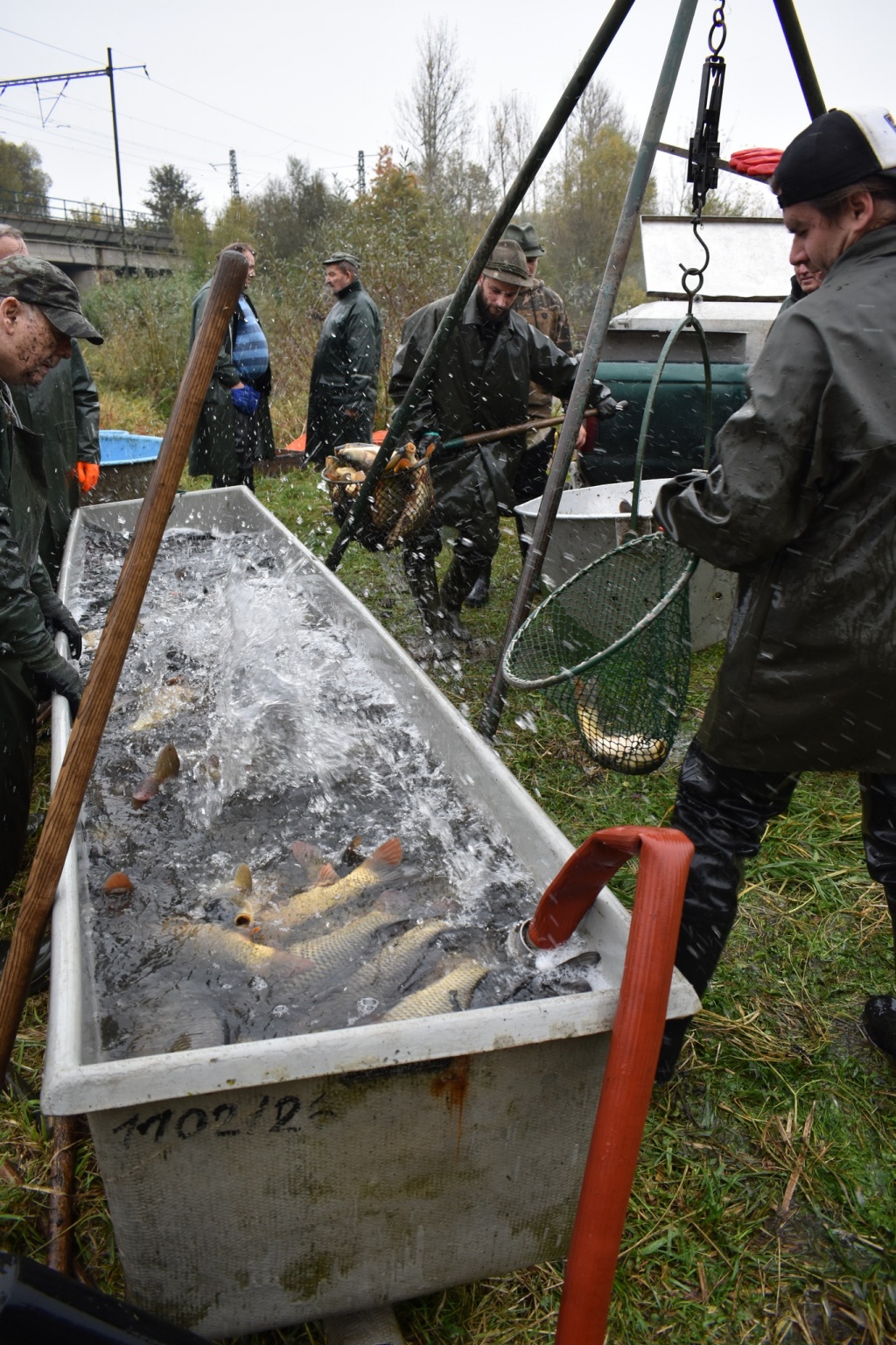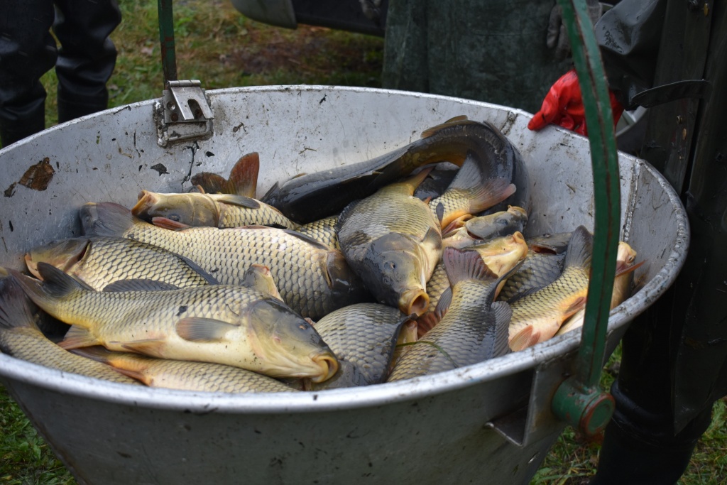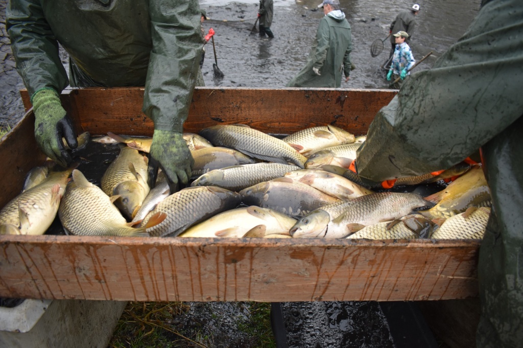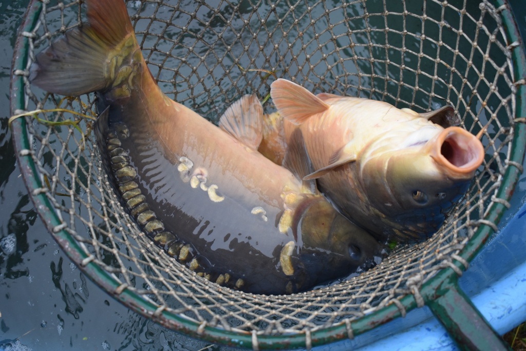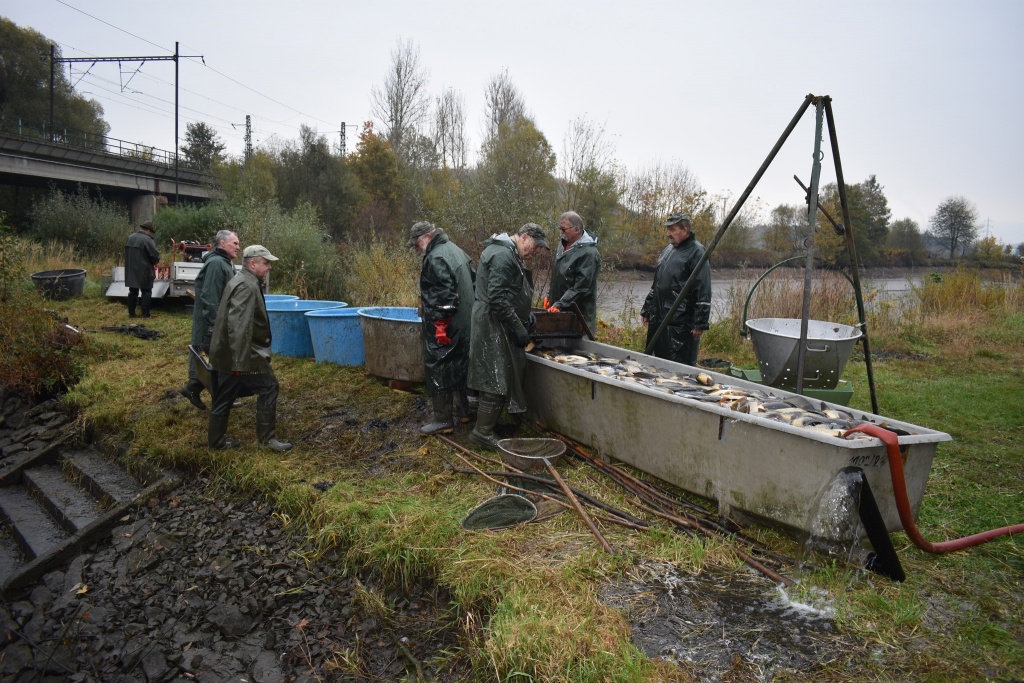 Na našem rybochovném zařízení v Chabařovicích byly sloveny další dvě chovné nádrže, do revírů putovalo 1200 kg karpra, amur určen k další produkci (chovu).