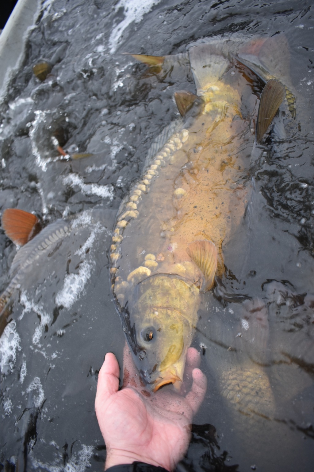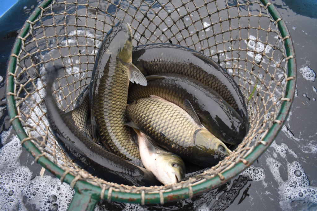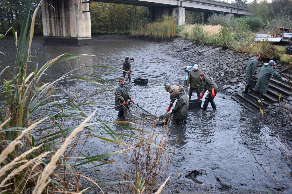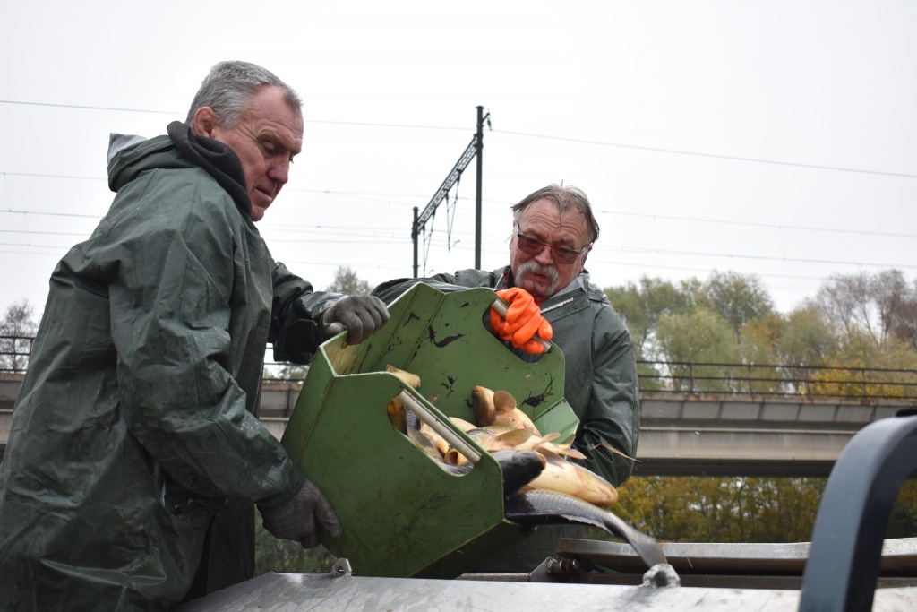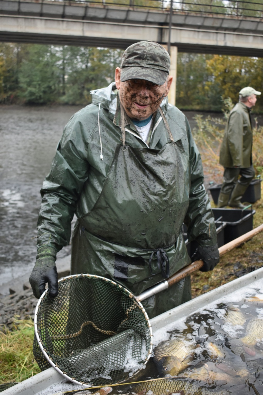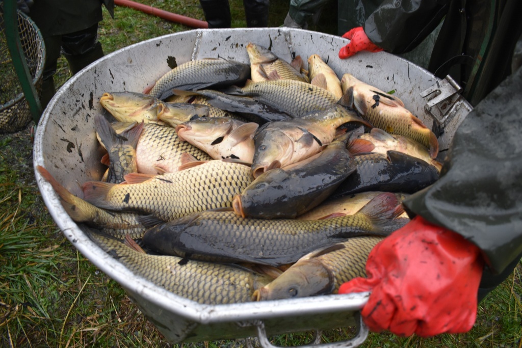Na našem rybochovném zařízení v Chabařovicích byly sloveny další dvě chovné nádrže, do revírů putovalo 1200 kg karpra, amur určen k další produkci (chovu).