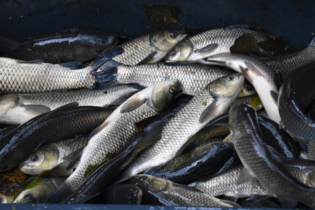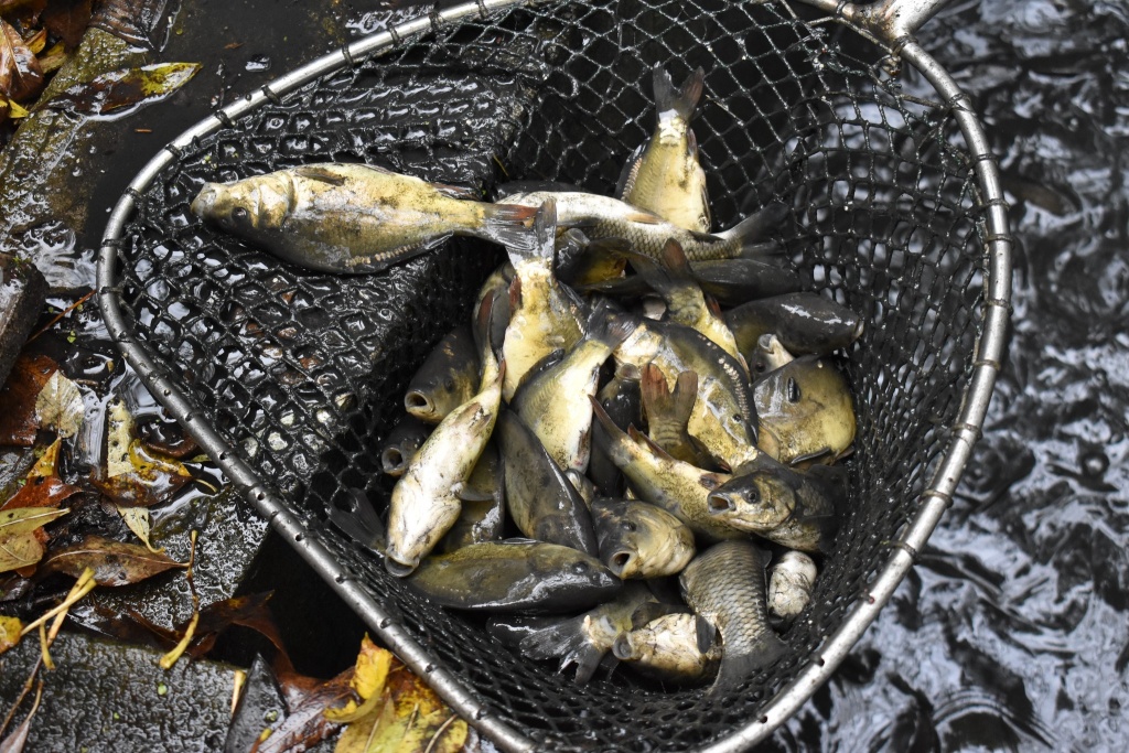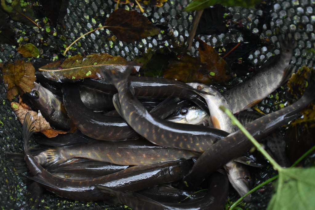 Na rybochovném zařízení Severočeského územního svazu v Chabařovicích sloveny další dvě nádrže. Stovky kilogramů kapra a amura určeny k další produkci (chovu), tyto ryby přemístěny do komor pro přezimování (kde budou i lépe chráněny před predátory), na tyto fešáky se rybáři mohou těšit v dalších letech, štika a candát distribuováni do revíru. A další distribuce dravců i kaprovitých ryb budou následovat zítra!