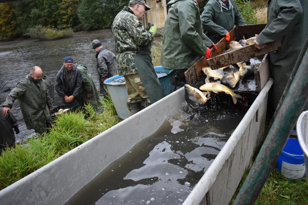 Během uplynulého víkendu byly na rybochovném zařízení Severočeského územního svazu sloveny tři nádrže. Sloveno a do revírů distribuováno bylo 1150 kg kapra o průměrné váze 1,8 kg/ks, a 500 kg o průměrné váze 1,4 kg/ks. Slovena také ryba určená k další produkci (chovu), jednalo se o 1700 kg kapra (K1) a amura (Ab2).