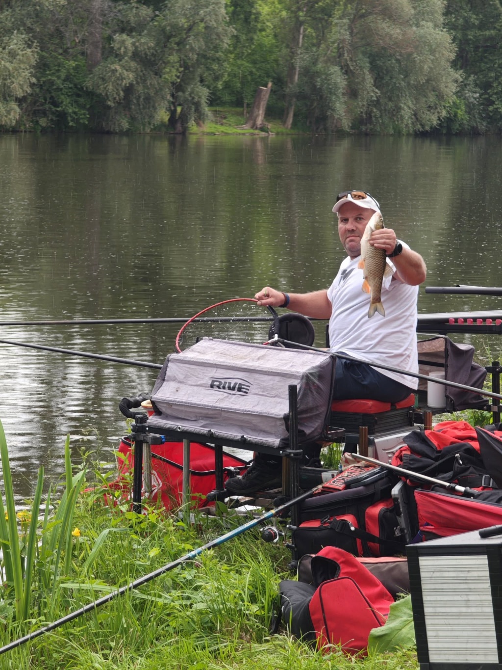 Počasí bylo dnes proměnlivé (cca 1/2 závodu pršelo), přesto zvláště na některých místech byla ryba při chuti (mezi lovené druhy patřili např. cejni, plotice, podoustve, kapři, tloušti a odtroretky). Nejlepšímu závodníkovi se dnes podařilo během 4 hodin nalovit přes 19 kg ryb.
