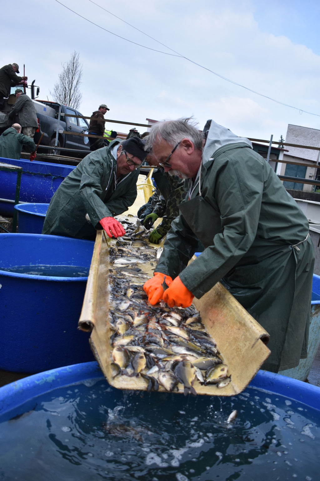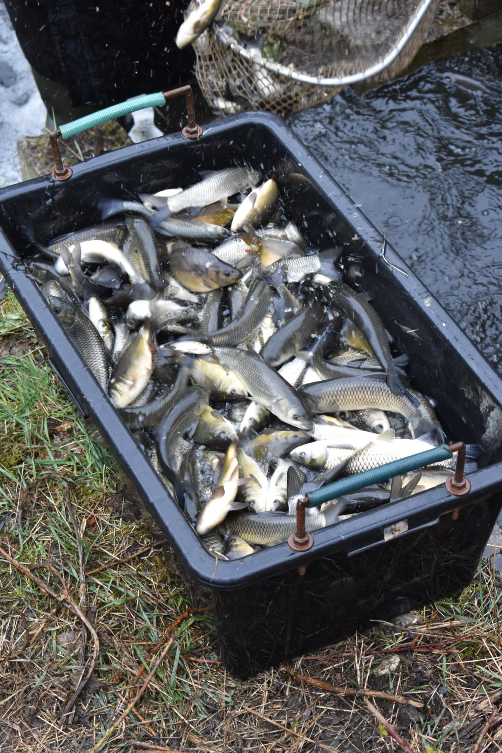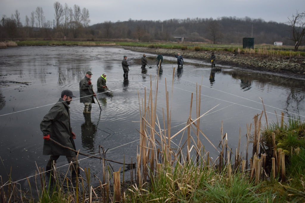 V pátek jsme slovili na našem rybochovném zařízení v Chabařovicích nádrž s rybami k další produkci (chovu).