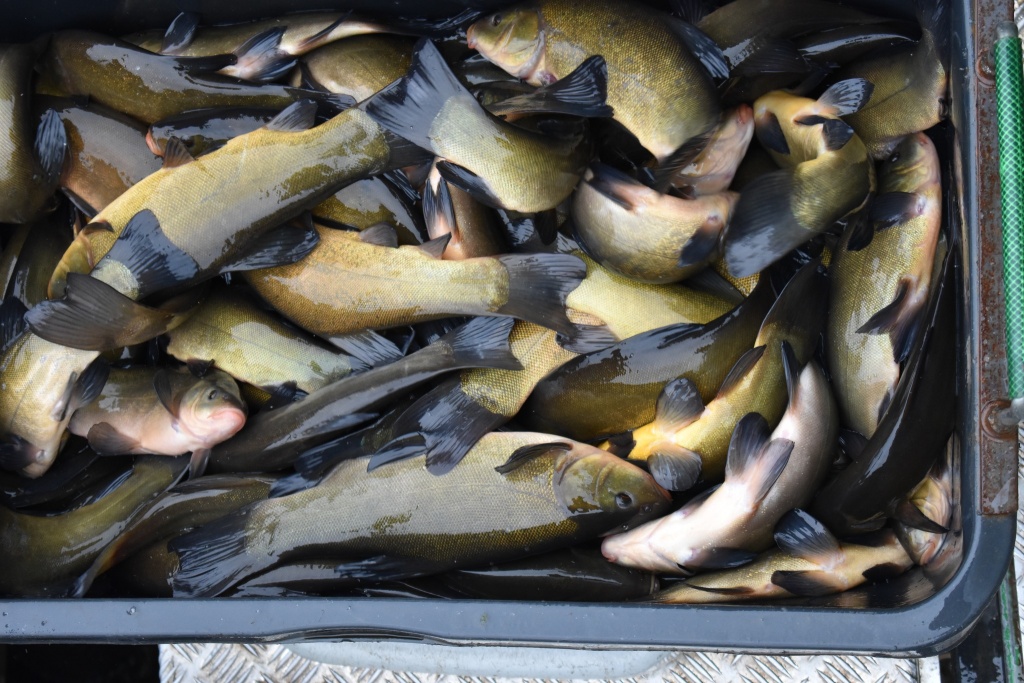 Do našich revírů bylo v pátek distribuováno dalších 1400 kg krásného lína (0,3 kg/ks), 800 kg amura (2 kg/ks) a 1600 kg kapra (1,8 kg/ks).