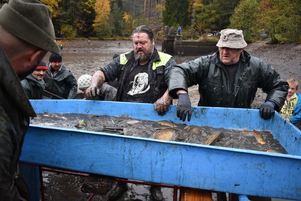 Včera proběhl záchranný odlov ryb z Kyjovské přehrady (MO Krásná Lípa, revír 0644109 Kyjov), která se vypouštěla po několika desítkách let. Celkem bylo sloveno cca 500 kg ryb, které byly distribuovány do ostatních nádrží svěřených do péče MO.