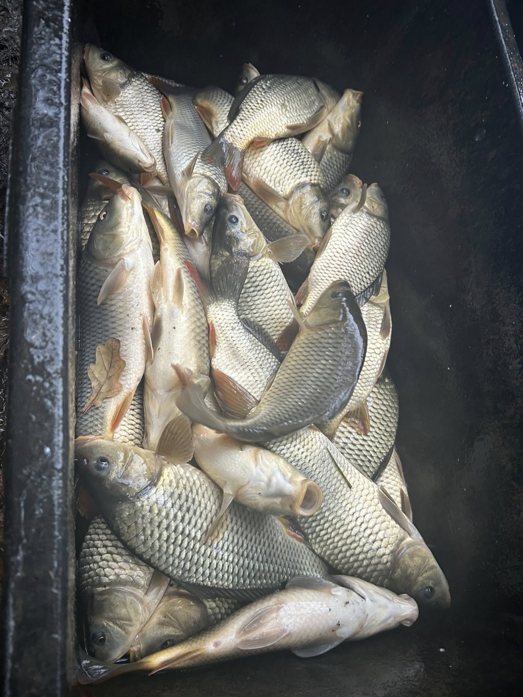 O uplynulém víkendu lovilo také např. v MO Chomutov, která slovila nádrž Zelenský (část ryb určena k další produkci, tedy chovu).
