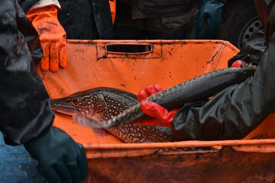 K další produkci bylo na naše rybochovné zařízení v Chabařovicích dodáno také 200 kg tržní štiky od Rybářství Lnáře, tato bude na líhni vytřena, stejně jako štika z prvního velkého jarního výlovu, který se konal v úterý 11.3.2020. Ostatní druhy ryb z výlovu určeny rovněž k další produkci.