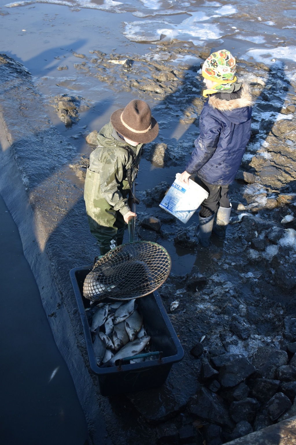 Nádrž je nutné vypustit z rozhodnutí úřadů s ohledem na průsaky hráze, byla cca 40 let nelovena, což se podepsalo i na komplikovanosti výlovu, to i díky množství sedimentu (na poprvé nebylo možné vše slovit). Dnešní ráno bylo mrazivé, tentokrát ale nikoho z bahna nezachraňovali hasiči. Zpestřením byl ovšem jeden z lovících, tomu v nádrži skončil jeho nový iPhone, který se mu po nedobrovolném otužování nakonec podařilo rovněž zachránit.